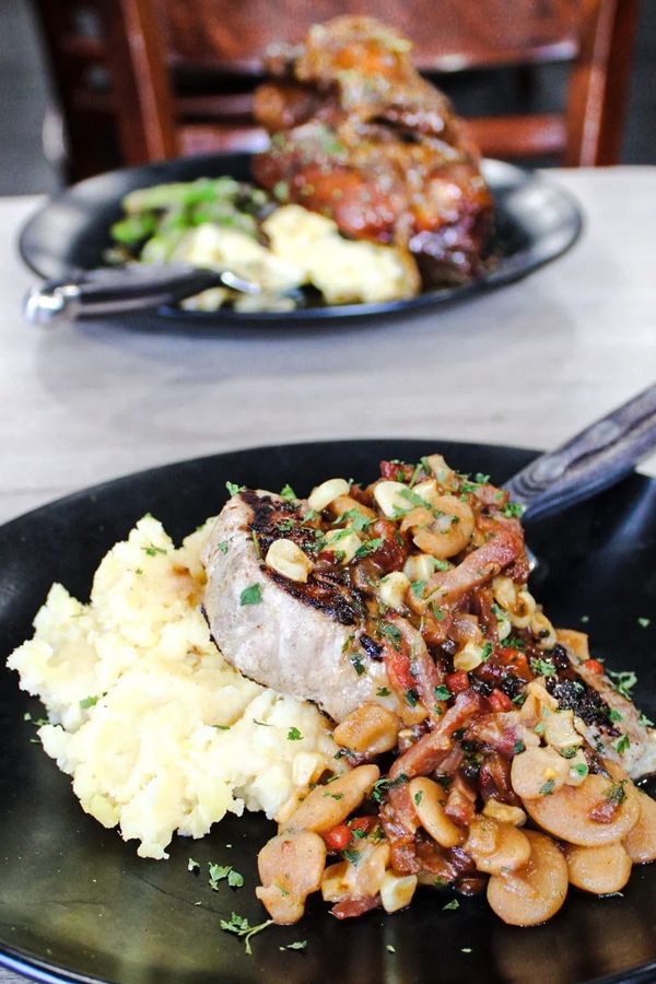 and local fare, along with a vegetarian option.